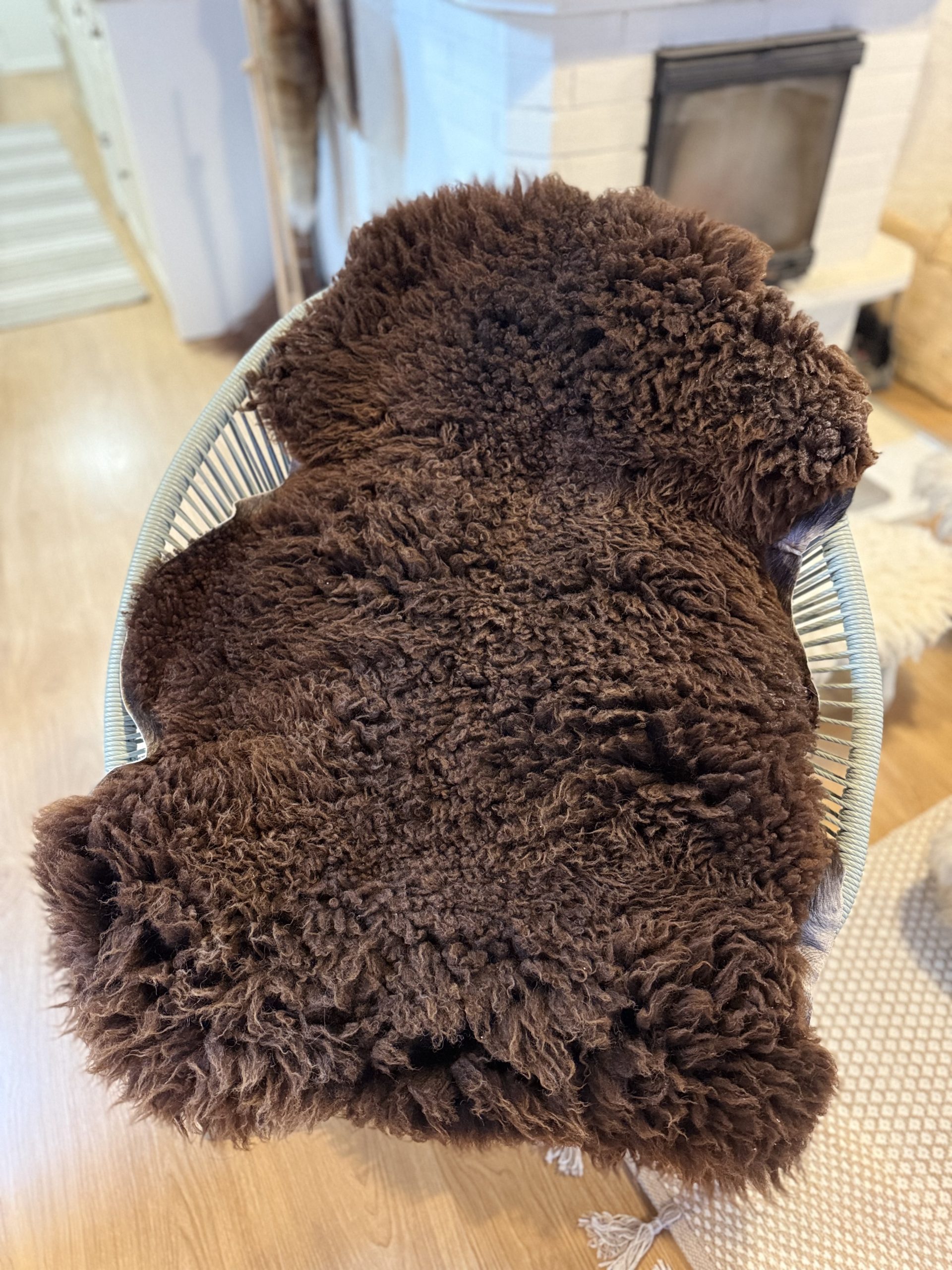 Tummanruskea suomenlampaan talja, pituus 120-130cm.