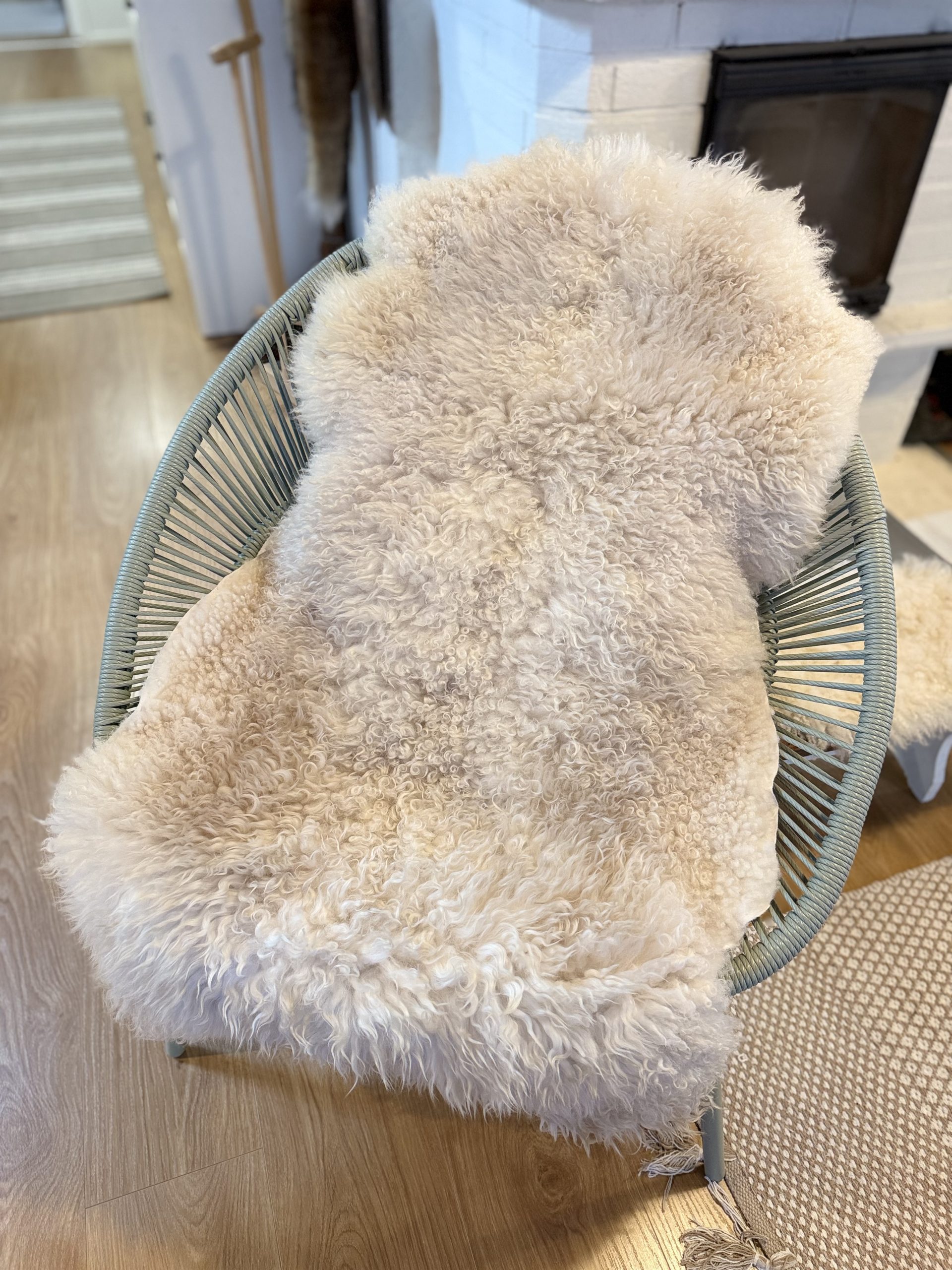 Valkoinen suomenlampaan talja, pituus 110-120cm.